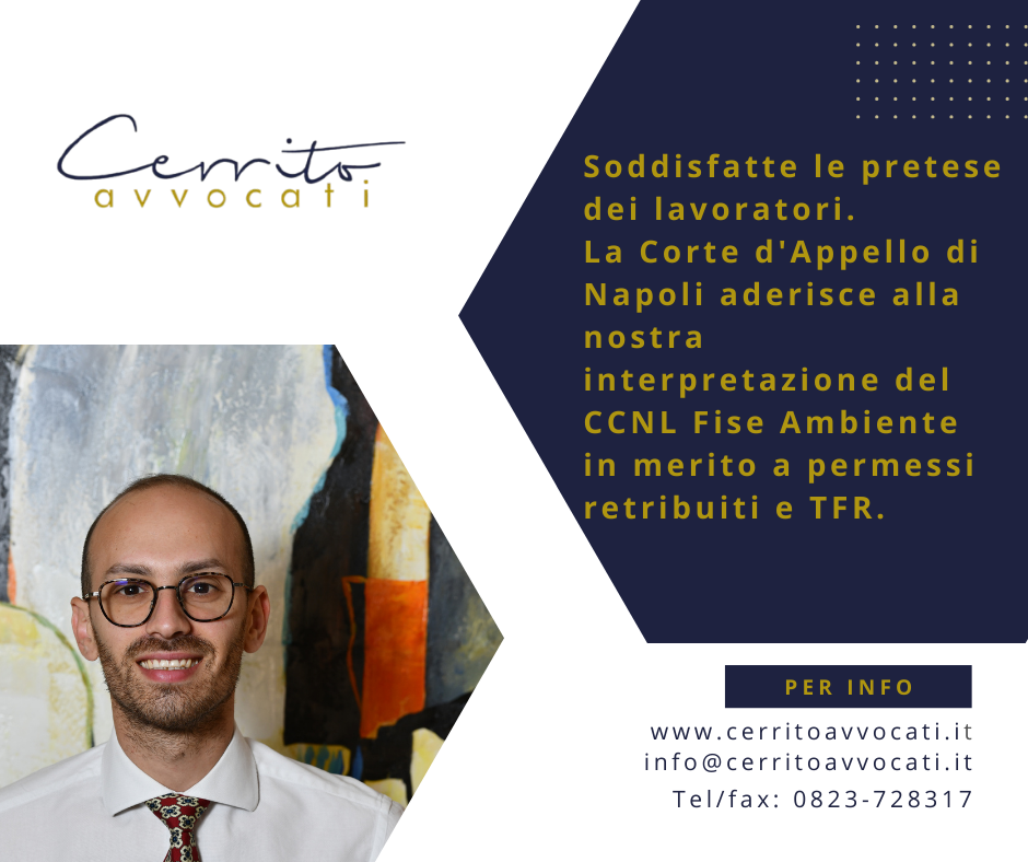 La sentenza n. 834/2024 della Corte d’Appello di Napoli, sez. Lavoro, riformando la decisione dei giudici di primo grado, sovvertendo l’originaria interpretazione delle clausole del Contratto Collettivo Nazionale di Lavoro Fise Ambiente, conferma l’efficacia di un’assistenza legale specializzata quale, appunto, quella fornita dallo Studio Legale Cerrito Avvocati.